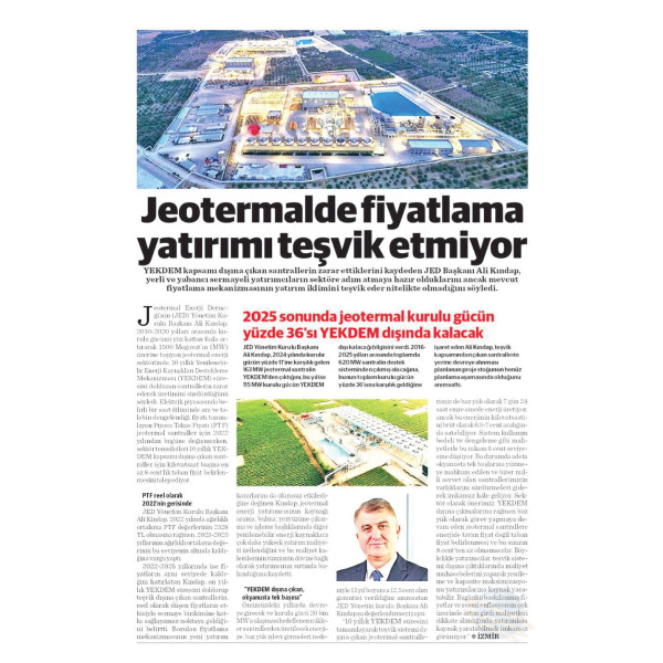 "JEOTERMALDE FİYATLAMA YATIRIMI TEŞVİK ETMİYOR." 11.08.2025 /