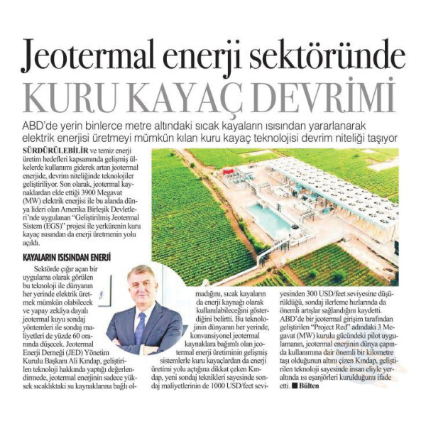 "TÜRKİYE, JEOTERMALDEN YETERİNCE FAYDALANMIYOR" 27.12.2023 / CUMHURİYET GAZETESİ