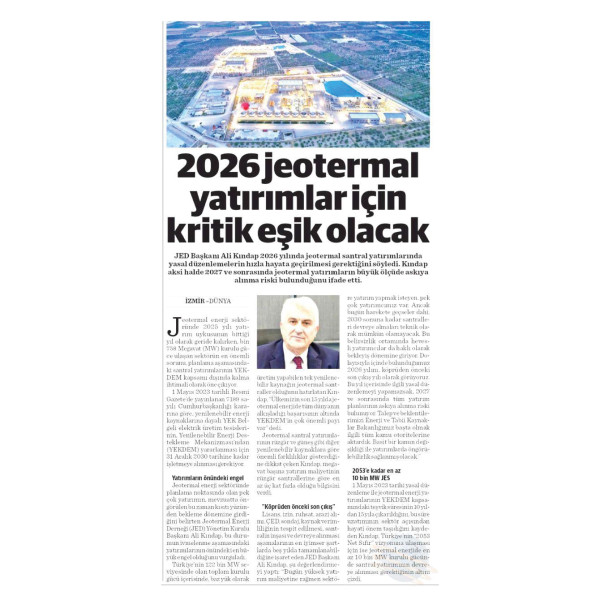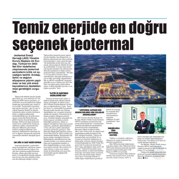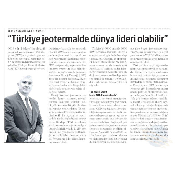"JEOTERMAL ENERJİ DERNEĞİ'NDE ALİ KINDAP YENİDEN BAŞKAN SEÇİLDİ" 14.01.2025 / NASIL BİR EKONOMİ GAZETESİ
