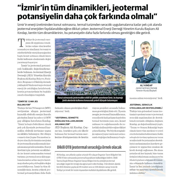 "ANADOLU COĞRAFYASI JEOTERMAL CENNETİDİR.." 09.08.2023 / EGE TELGRAF GAZETESİ